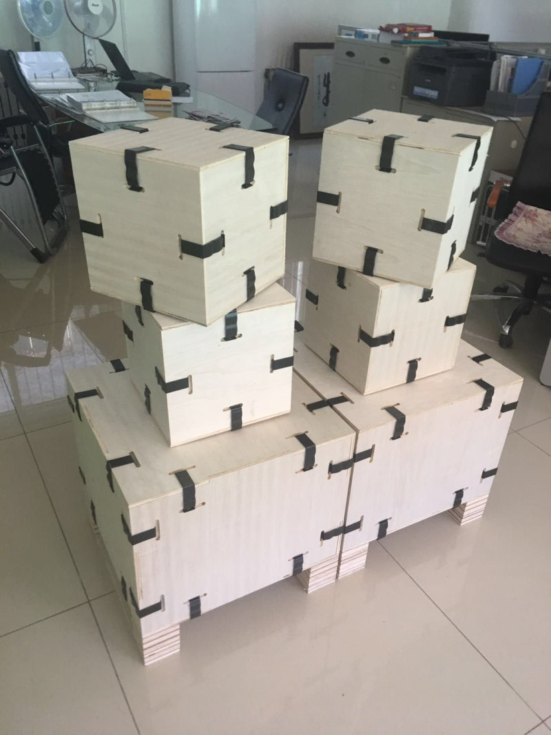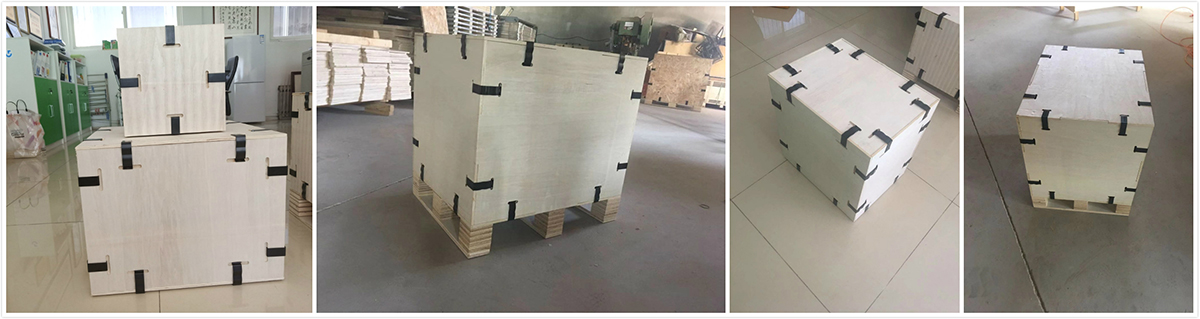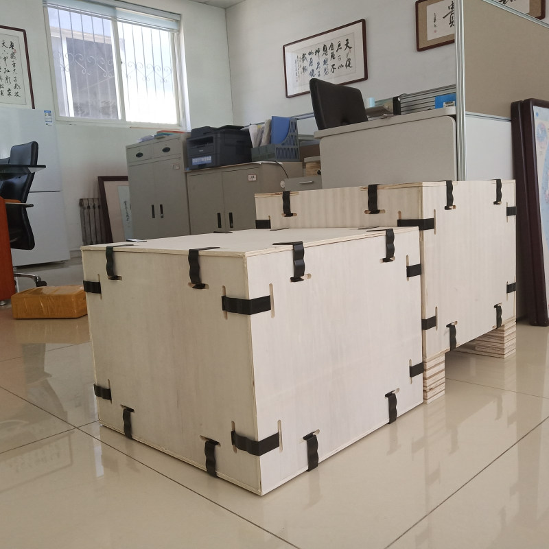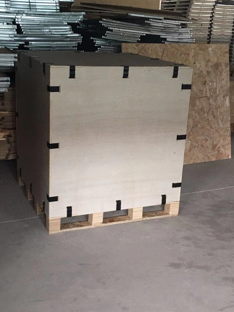 卡扣式木包裝箱全部采用高強度OSB板,箱體由高強度的金屬制件連接而成,其原理是箱體整體受力,無論是組裝還是運輸,都不會出現松動現象,同時避免漏釘、露釘、少釘、工藝粗糙、灰塵、雨淋、結構處理不當、運輸途中箱體碰撞造成的散架等問題;保障了產品的安全性,保證了客戶收貨時的完整性,同時由于是無釘化作業,確保了現場包裝人員的安全。同材質條件下,卡扣箱性能超過傳統木箱。